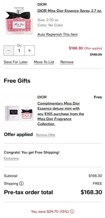 Treat yourself to a luxury beauty haul! You deserve it! Enjoy 15% OFF Dior beauty and fragrance at Macy’s! Whether you’re adding the blackberry, jasmine, and oakwood notes of the NEW Miss Dior Essence Parfum to your fragrance collection or grabbing another bestselling Addict Lip Glow Butter for your bag, add to cart today!