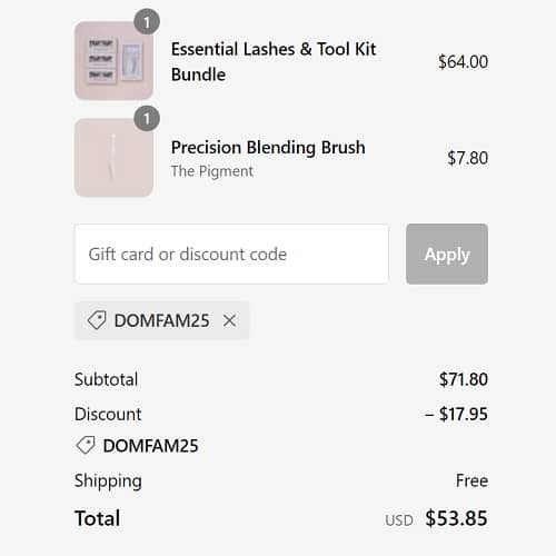 Use the Dominique Cosmetics coupon code DOMFAM25 to add the discount to your cart. FREE SHIPPING applies to orders $50+. Exclusions may apply.