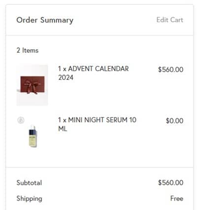 The FREE gift with purchase will add to cart once your order qualifies. Don’t forget to add your FREE samples. FREE SHIPPING applies automatically at checkout. Take a look at our other 2024 Advent Calendar value breakdowns!