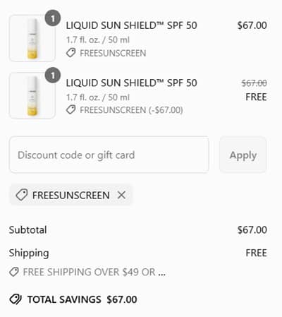Add 2 Liquid Sun Shield to cart and use the Dr. Brandt coupon code FREESUNSCREEN (click to copy) for one to become FREE. The FREE gift with purchase will add to cart once your order qualifies. FREE SHIPPING applies to orders $49+. Take a look at our other favorite finds!