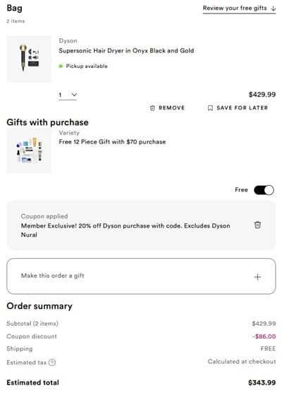 Savings, a points multiplier, and a FREE gift with purchase? Yes, please! Today’s the day to treat yourself to a Dyson! Ulta Beauty Rewards members (free to join) use the code below to save 20% OFF the Dyson Supersonic Hair Dryer, Airwrap, Airstrait, and Corrale! This includes exclusive, limited editions, and select accessories!