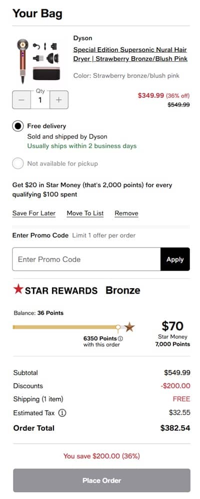 This is a can’t miss offer on a hair icon! Save $200 OFF the Dyson Supersonic Nural Hair Dryer + Case in Strawberry Bronze/Blush Pink PLUS earn $60 in Macy’s Star Money (that’s 6,000 bonus points)! The Strawberry Bronze/Blush Pink set includes 6 attachments PLUS the signature hard storage case! You’ll also save and earn on the Ceramic Patina/Topaz and Vinca Blue/Topaz sets! Don’t let it sell out Besties!