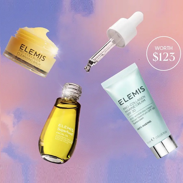 Stay fresh and glowy all summer long with Elemis! Receive a FREE 3 Piece Gift with the purchase of any full size item! Use the code GLOW in cart to add your gift! This freebie contains a FULL SIZE Superfood Facial Oil ($59 value), a Pro-Collagen Cleansing Balm ($13.20 value) AND a Pro-Collagen Marine Cream ($39.60 value)! Even better FREE SHIPPING applies to all orders!