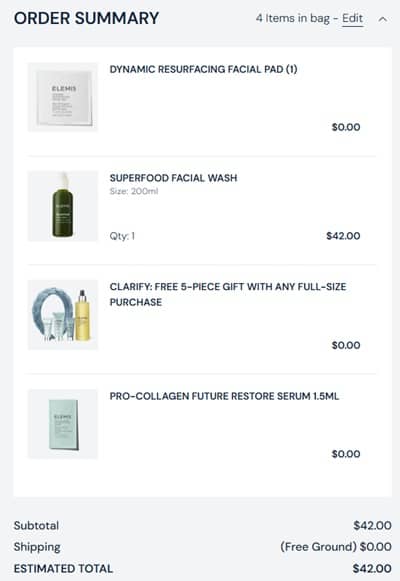 Level up your skincare routine courtesy of ELEMIS! For a LIMITED TIME ONLY receive a FREE ELEMIS Clarity Gift with any full size item purchase! This freebie includes a FULL SIZE Soothing Apricot Toner to calm and refresh dry or irritated skin, a deluxe Pro-Collagen Marine Cream, exfoliator, cleanser, and a signature headband! That’s a total value of $134!