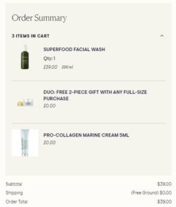 Here’s your sign to click ‘add to cart’ Besties! Receive a FREE ELEMIS Cleanse & Glow Duo valued at $103 with any full size item purchase WHILE SUPPLIES LAST! This gift with purchase includes a FULL SIZE Pro-Collagen Marine Cream SPF 30, a $94 value alone, plus a Pro-Collagen Naked Cleansing Balm mini! Check out our example cart below!