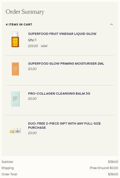 Tackle fine lines and wrinkles with this classic bestseller courtesy of ELEMIS! Receive a FREE Cleanse & Glow Duo, a $104 value, with any full size item purchase WHILE SUPPLIES LAST! This set includes a FULL SIZE Pro-Collagen Marine Cream SPF 30 and a mini Pro-Collagen Naked Cleansing Balm! Check out our example cart below!