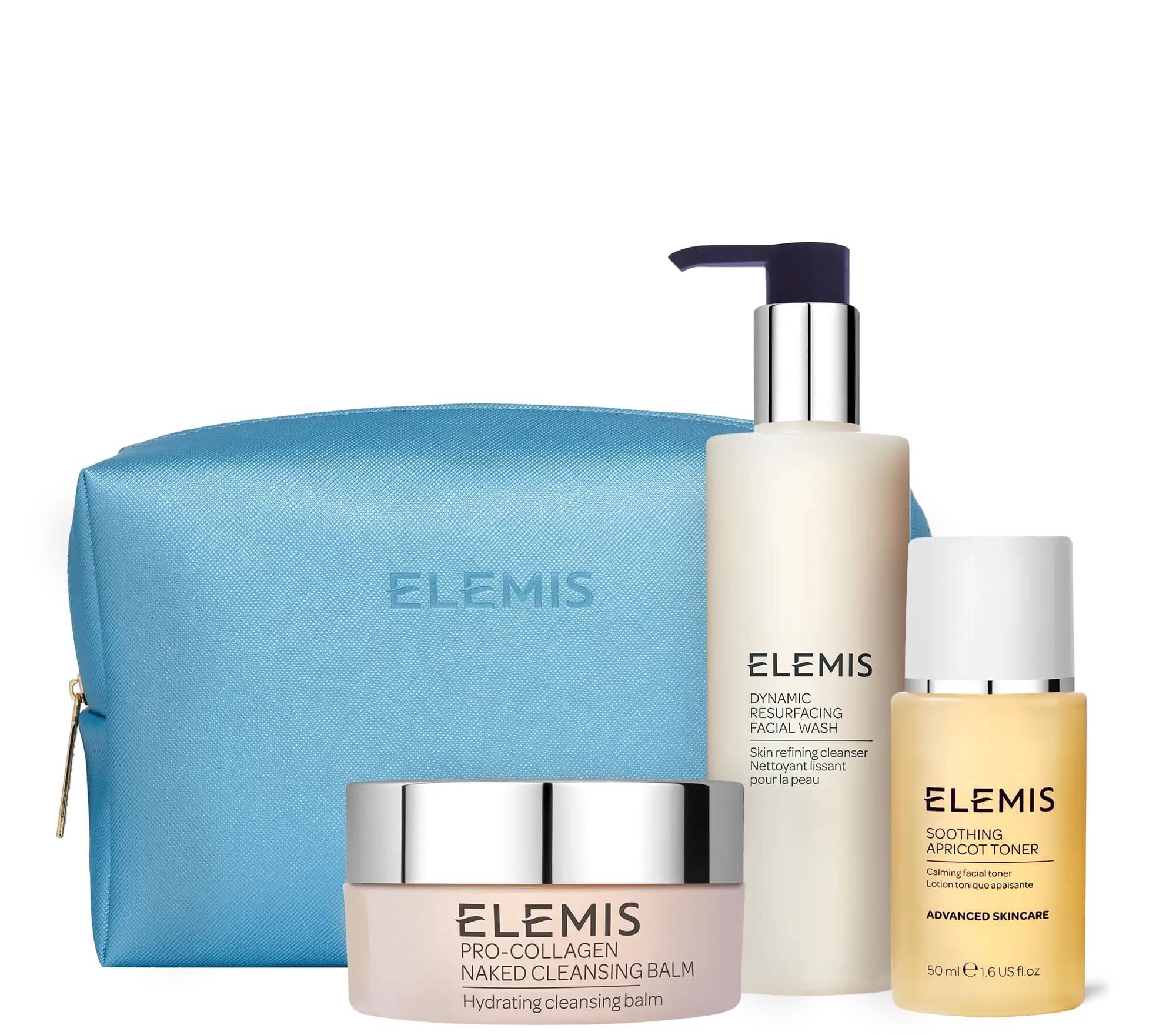 ELEMIS always does freebies right! Receive a FREE ELEMIS 4 Piece Skincare Gift, a $99.50 value, with any full size item purchase WHILE SUPPLIES LAST! This set comes in a gorgeous light blue metallic bag and includes a FULL SIZE Dynamic Resurfacing Facial Wash, an $55 value alone, PLUS a travel sized Pro-Collagen Naked Cleansing Balm and deluxe sized Soothing Apricot Toner!