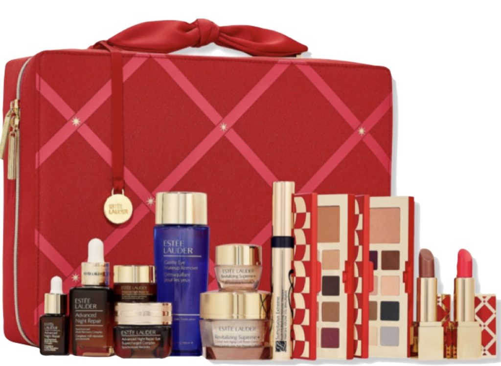 Just in time to kick off the holiday season, Estee Lauder is back with another amazing offer! Right now when you spend $45+ on Estée Lauder at Belk, Estée Lauder, Macy’s, Neiman Marcus, Nordstrom or Ulta Beauty, you can get the 13 piece Beauty Essentials set for just $75 (a $550 value)! This set includes 9 FULL SIZE products, 3 deluxe samples, 18 eye & cheek colors & a recyclable train case, making it more than worth the price! FREE SHIPPING FROM ALL RETAILERS for this offer.