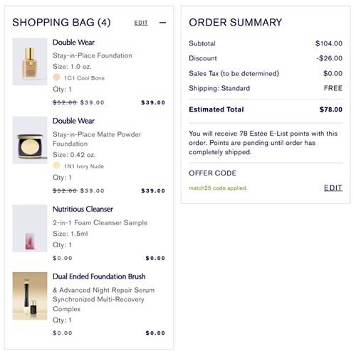 No code needed, eligible Estée Lauder Foundation will be discounted in cart. Use the coupon code MATCH25 (click to copy) to add the FREE gift with purchase to cart. FREE samples apply to orders $75+. FREE SHIPPING applies automatically at checkout. Excludes Re-Nutriv and already discounted items. Take a look at our other favorite finds!