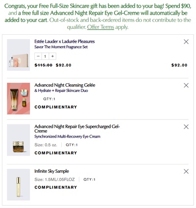 Customize your Estée Lauder Skincare Trio and it will become FREE in cart once your order qualifies. The FREE Advanced Night Repair Eye Gel-Cream will add to cart once your order qualifies. You will be prompted to add your FREE sample. FREE SHIPPING applies on orders $50+. Take a look at our other favorite finds!