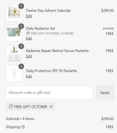 Use the coupon code WELCOME20 (click to copy) to add the FREE gift with purchase to cart. FREE SHIPPING applies automatically at checkout. Take a look at our other 2024 Advent Calendar value breakdowns!