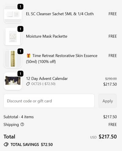 Savings and a freebie? Yes, please! Take 25% OFF the Eve Lom 12 Day Advent Calendar 2025 with FREE SHIPPING for a LIMITED TIME ONLY! To make the deal even sweeter, you’ll receive a FREE 50ml Time Retreat Restorative Skin Essence, a $43 value! Enjoy 12 items including a FULL SIZE Radiance Repair Retinol Serum , A $185 VALUE alone, plus A FULL SIZE Antioxidant Eye Cream, FULL SIZE fan fave Gel Balm Cleanser, and more! Take a look at our value breakdown below to help you decide if the Eve Lom Advent Calendar 2025 is worth adding to cart! Take a look at our other 2025 Advent Calendar value breakdowns!