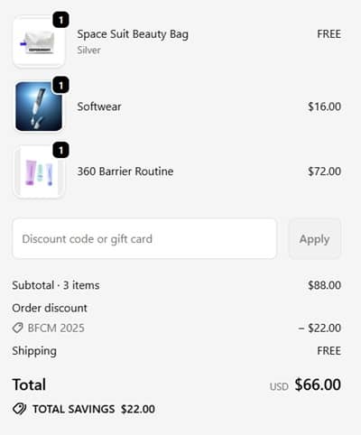 Skincare lovers, this one’s calling your name! Take 25% OFF your favorites during the Experiment Black Friday Sale Event! PLUS receive a FREE Signature Space Suit Beauty Bag with any $60 purchase WHILE SUPPLIES LAST! Check out the 360 Barrier Routine! Including 3 FULL SIZE bestsellers to tackle even the most dry, sensitive complexion, an $80 value yours for only $54!