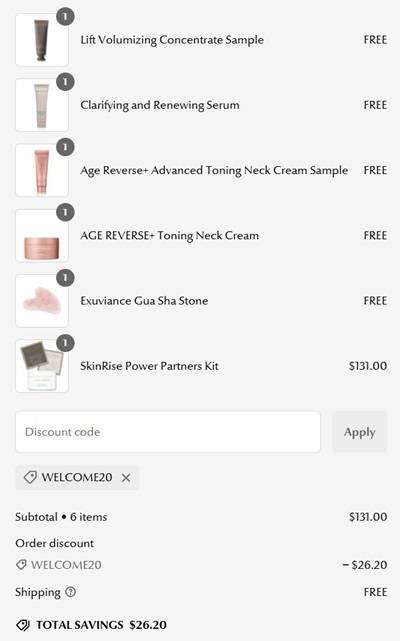 We can’t resist a FULL SIZE freebie! Enjoy a FREE Exuviance AGE REVERSE+ Toning Neck Cream and Gua Sha with any $110 purchase WHILE SUPPLIES LAST! Regularly $98 alone, firm, lift, and tackle wrinkles with this fan favorite! New customers use the code WELCOME20 (click to copy) to save 20% OFF your first purchase!