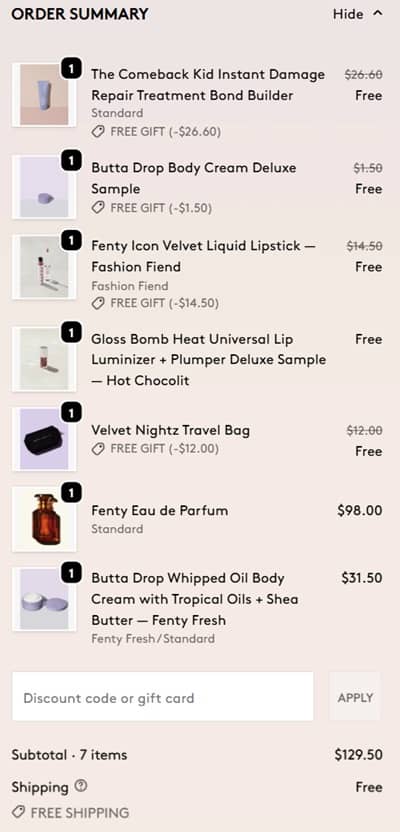 No code needed, priced as marked. You will be prompted to add your FREE FENTY Beauty Friends & Family gift with purchase once your order qualifies. Sign in to your account (free to join) for FREE SHIPPING. Exclusions may apply. Take a look at our other favorite finds!