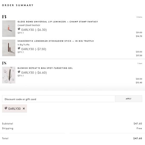 Use the FENTY Beauty coupon code EARLY30 to add the discount to your cart. FREE SHIPPING applies automatically at checkout. Exclusions apply.* Take a peek at our other favorite deals!