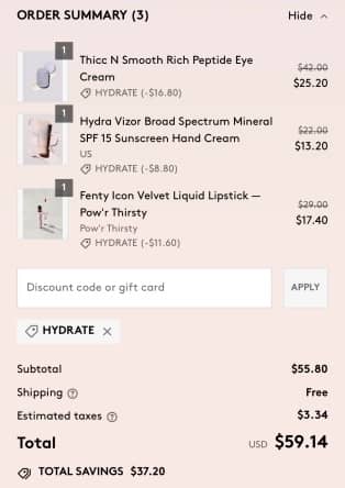 Use the FENTY Beauty coupon code HYDRATE (click to copy) to add the discount to cart. FREE SHIPPING applies automatically at checkout. Take a look at our other favorite finds!