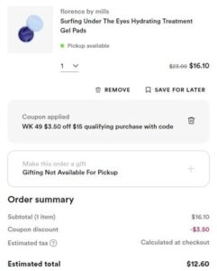 Stock up time Besties! Save 30% OFF Florence by Mills skincare for a LIMITED TIME ONLY at Ulta Beauty! To make the deal even sweeter, use the coupon code 985487 (click to copy) to save $3.50 OFF your qualifying non prestige purchase of $15+ (exclusions apply). Take a look at our example cart below!