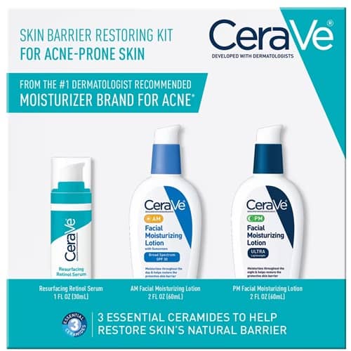 Simplify your skincare routine with budget friendly CeraVe and enjoy a freebie! Enjoy a FREE CeraVe Skin Barrier Restoring Kit, a $48.99 value, with any $25 brand purchase at Ulta Beauty! This set includes 3 FULL SIZE items: the AM Moisturizer, PM Moisturizer, and Resurfacing Retinol Serum!