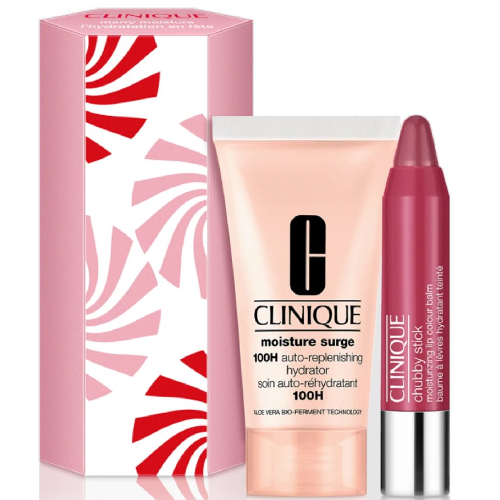Set includes: Moisture Surge 100H Auto-Replenishing Hydrator (1 oz, $24.12 value) & Chubby Stick Moisturizing Lip Colour Balm in Super Strawberry (0.04 oz, $7.14 value)