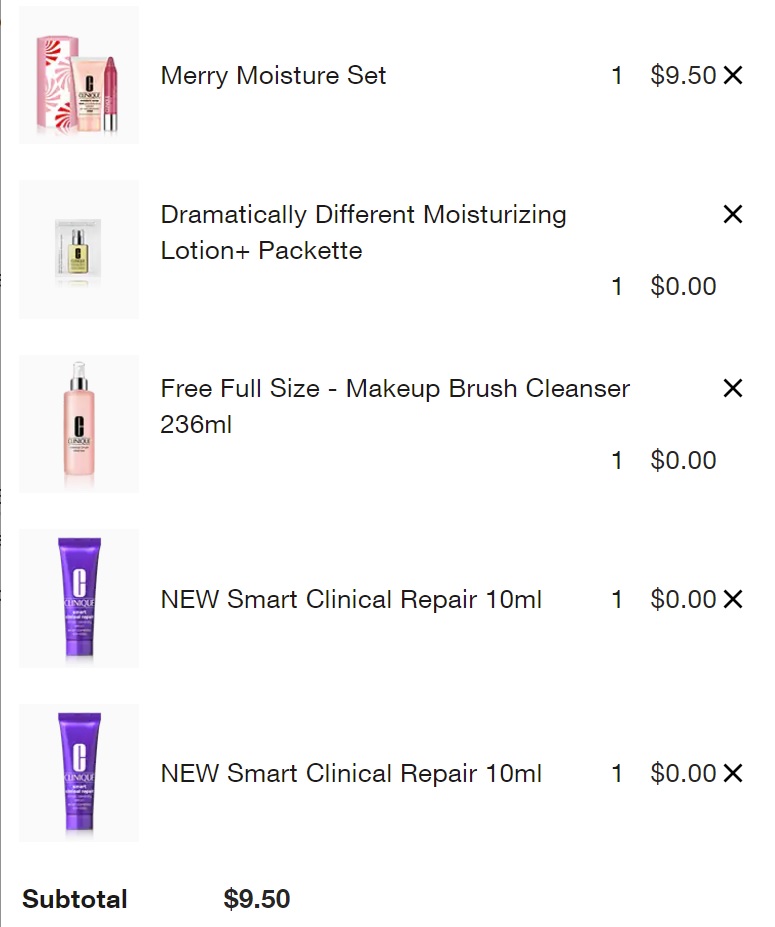 Clinique always hits us with great freebies! Get a FREE FULL SIZE Makeup Brush Cleanser with any makeup purchase! Choose either the Merry Moisture set for $9.50 or the Pop Treats set for $9.50! The FREE FULL SIZE Makeup Brush Cleanser (8 oz, $19.50 value) will add to your cart automatically PLUS log into your Clinique Smart Rewards account and use code FREESMARTS for 2 x 10 ml Smart Clinical Repair Wrinkle Correcting Serum deluxe samples! FREE SHIPPING applies automatically on all orders.