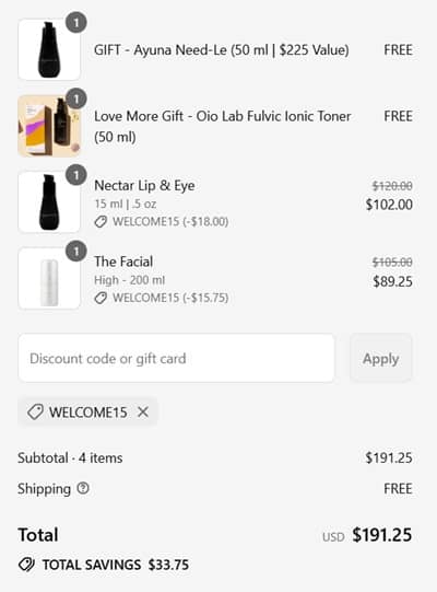 Tackle uneven tone and texture with a FULL SIZE luxury bestseller! Receive a FREE Ayuna Need-le Brightening Microchanneling Nectar with any $200 brand purchase WHILE SUPPLIES LAST at Beauty Heroes! You’ll also enjoy the Oio Lab Fulvic Ionic Toner 50ml, a $42 value, for FREE! Check out our example cart below!