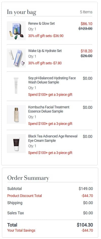 Freshen up your skincare routine and maximize your savings! Save 30% OFF select fresh Value Sets! PLUS you’ll receive a FREE Bestsellers Trio, a $38 value, with any $100 purchase! Besties looking for that lit from within glow check out the Renew & Glow Set! This trio includes a 1oz Tea Elixir Skin Resilience Activating Serum, regularly $80 alone, PLUS a Ceramide Moisturizer 1oz, and the bestselling Kombucha Antioxidant Facial Treatment Essence 1.6oz, yours for only $86.10!