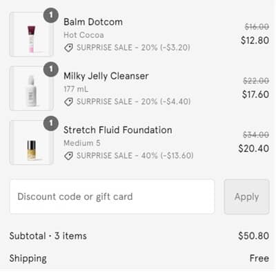 Grab these goodies before they’re gone! Take 20% OFF select favorites during the Glossier Surprise Sale Event! You’ll save on bestsellers like the iconic Cloud Paint blushes and bronzers, Milky Jelly Cleanser, Balm Dotcom, and more! PLUS score your perfect shade of Stretch Concealer and Stretch Fluid Foundation with 40% OFF! Add to cart besties!