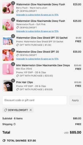 For a LIMITED TIME ONLY enjoy a juicy freebie from Glow Recipe! You’ll receive a FREE Watermelon Glow Niacinamide Dew Drops mini, a $20 value, and a set of limited edition no crease hair clips with your orders $85+! Grab your favorites and head to checkout because this gift won’t last long!
