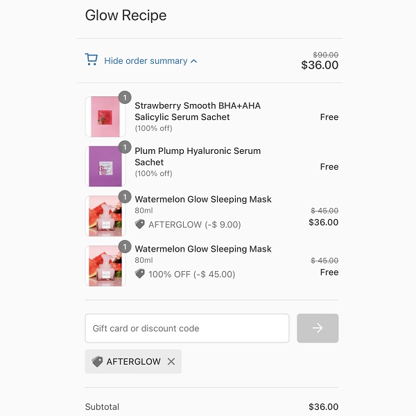 Stock up on this skin smoothing nightly sleeping mask from Glow Recipe! The bestselling Watermelon + AHA Glow Sleeping Mask is Buy 1 Get 1 FREE for a LIMITED TIME ONLY PLUS add the code AFTERGLOW at checkout to take an ADDITIONAL 20% OFF! That means you’ll get 2 FULL SIZE Watermelon Sleeping Masks for only $36! FREE SHIPPING applies to all orders $50+.