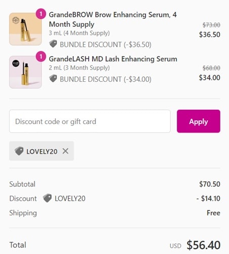 Add 2 like items to cart and the discount will reflect at checkout. Use the Grande Cosmetics coupon code LOVELY20 (click to copy) or MISSYA20 (click to copy) to add the extra 20% OFF to your cart. FREE SHIPPING applies automatically at checkout. Take a look at our other favorite finds!