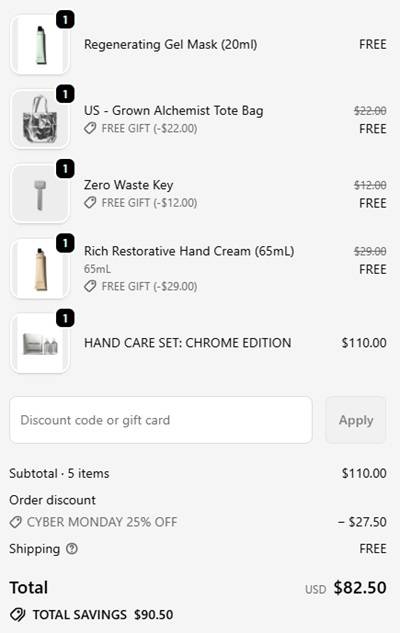Indulge in a little self care with luxurious body and hand creams, hair and skincare! Save 25% OFF your Grown Alchemist Cyber Sale must haves! To make the deal even sweeter receive a FREE Chrome Trio that includes a Rich Restorative Hand Cream 65ml, Zero Waste Key, and Signature Tote, a $63 value! Whether you’re restocking the fan favorite Skin Defense Primer or grabbing a gift set for your Bestie! Add. To. Cart and enjoy the freebie!