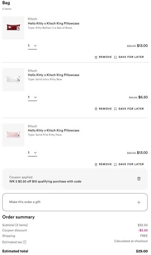 Calling all of our Hello Kitty fam! Grab these before they’re gone! Save 75% OFF the Hello Kitty x Kitsch Solid Ivory Kitty Bow King Size Pillowcase WHILE SUPPLIES LAST! You can also score the Solid Pink Kitty Face and Kitty Bathes in a Sea of Bows Pillowcases for 50% OFF! Don’t let these sell out Besties! Be sure to shop the TODAY ONLY 50% OFF Beauty Steals and add on the FREE 12 Piece Gift with any $70 Ulta Beauty Rewards Credit Card purchase if your order qualifies!
