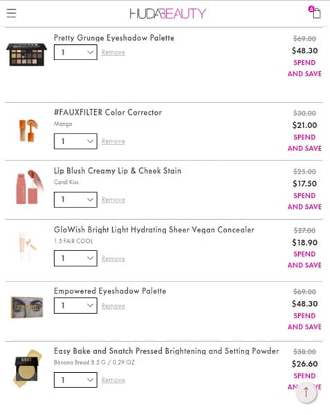 HUDA Beauty fam! Start adding to cart because the more you buy, the more you’ll save! Take 30% OFF your HUDA Beauty purchase of $200+, 25% OFF your $150 purchase, or orders $100+ save 20% OFF! Here’s your chance to add the Pretty Grunge Eyeshadow Palette or a new shade of the Lip Blush Cream Lip & Cheek Stain to your collection for less!