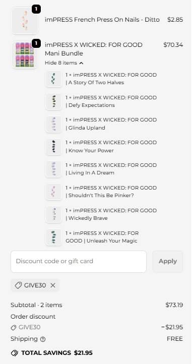 Use the imPRESS coupon code GIVE30 to add the discount to cart. FREE SHIPPING applies to orders $24.95, shipping for orders less than $24.95 is only $5.95. Take a look at our other favorite finds!