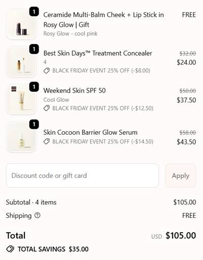 Simplify your beauty routine with skincare-infused favorites! Shop 25% OFF your makeup must haves and 30% OFF sets during the Iris&Romeo Black Friday Sale Event! To make the deal even sweeter, receive a FREE Ceramide Multi-Balm Cheek + Lip Stick in the shade Rosy Glow, a $32 value, with any $100 purchase! This sale does include the newest Skin Cocoon Barrier Repair Glow Serum! This multi-tasking oil serum hybrid, soothes and comforts while hydrating, plumping, and firming!
