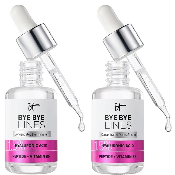 Say Bye Bye to fine lines and wrinkles and Hello to big savings! The IT Cosmetics Bye Bye Lines Anti-Aging Serum Duo is only $34 with FREE SHIPPING for a LIMITED TIME ONLY from QVC! Formulated with hyaluronic acid to deliver lasting hydration, this set contains 2 FULL SIZE serums that are regularly $29 EACH!