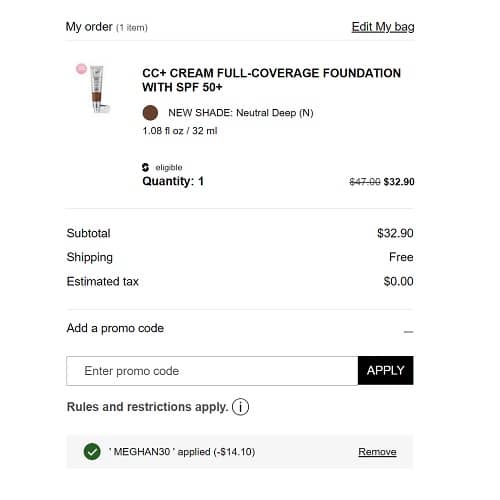 Use the IT Cosmetics coupon code MEGHAN30 to add the discount to your cart. FREE SHIPPING applies to orders $60+ or choose FREE SHIPPING with ShopRunner on orders $25+. If you don’t have a ShopRunner account you can sign up for a FREE 1 year membership from Paypal and get FREE 2-DAY SHIPPING at some of your favorite stores! Excludes travel sizes.