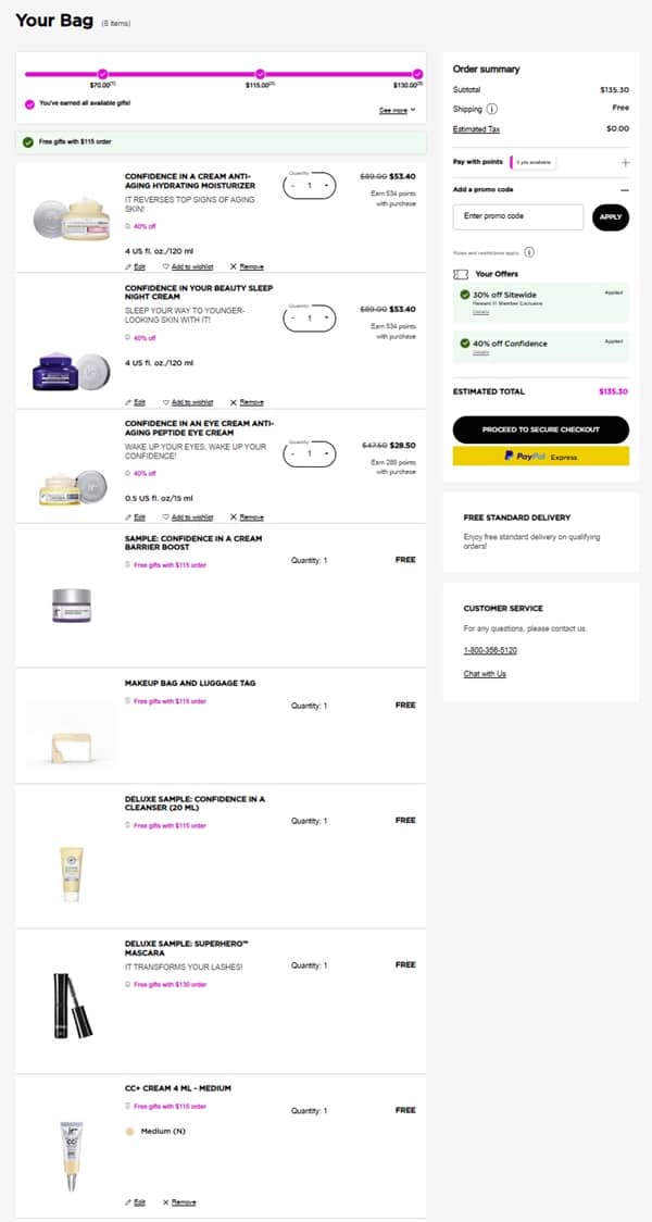 Join the birthday sale-abration! Save 40% OFF the IT Cosmetics Confidence Collection for a LIMITED TIME ONLY! Rewards members (free to join) take 30% OFF everything else so be sure to sign in! Whether you’re restocking the bestselling Confidence in a Cleanser hydrating facial cleansing serum or trying a new shade of one of Bestie Amy’s favorites, the non-sticky Confidence in a Serum Lip Gloss! Add to cart today! Orders $115+ receive a FREE 4 Piece Gift or step up to a $130 purchase and you’ll receive a FREE 5 Piece Gift!