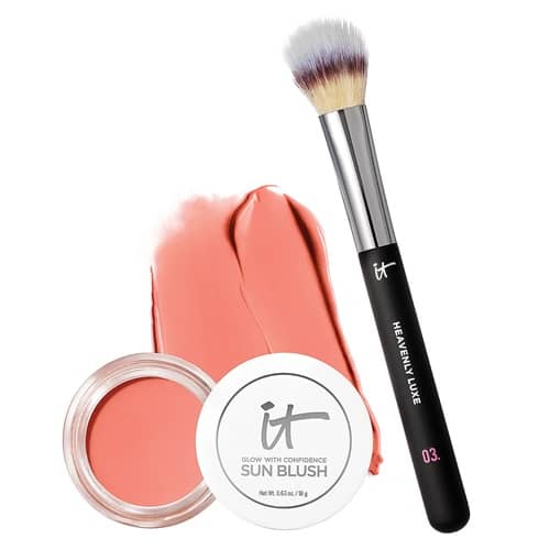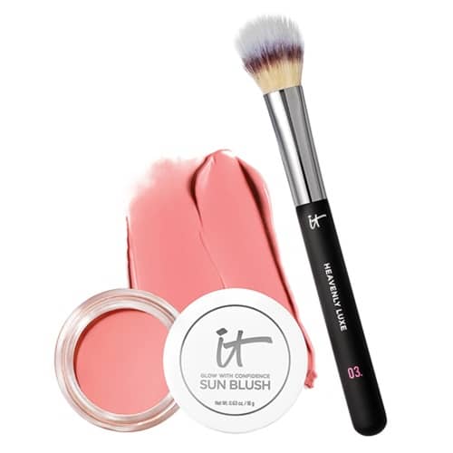 Keep that summer flush! Score the IT Cosmetics Glow with Confidence Sun Blush & Brush Duo for only $39.98 with FREE SHIPPING at QVC! You’ll love the skincare infused solid serum to cream formula! Choose from 5 sheer natural, brightening shades from soft pink to a sun-kissed deep red. PLUS you’ll receive the luxurious dual fiber brush for flawless application!