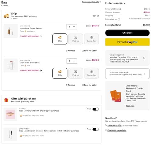 Activate any points multipliers you may have available to you. Ulta Beauty Rewards members sign in to your account and use coupon code MEMBERSONLY (click to copy) to add the discount to cart. FREE SHIPPING applies on orders $25+ for Diamond members and $35+ for everyone else or choose BOPIS buy online pick up in store if available in your area. Check out our other favorite Ulta Beauty finds!
