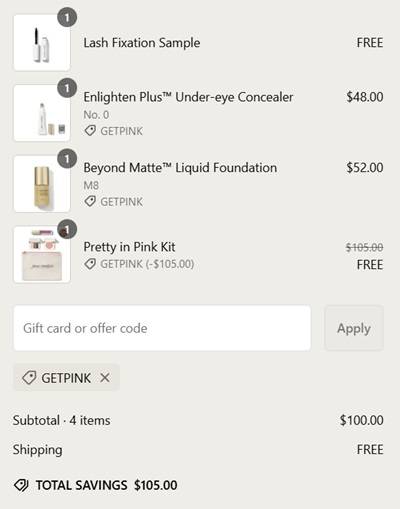 - FREE Pretty in Pink Makeup Trio use code GETPINK (click to copy)