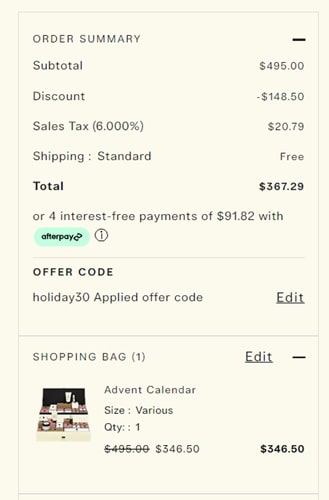 Use the Jo Malone London coupon code HOLIDAY30 (click to copy) to add the discount. FREE SHIPPING applies automatically at checkout. Check out our other 2023 Advent Calendar value breakdowns!