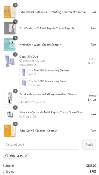 Use the Kate Somerville coupon code FAMILY25 (click to copy) to add the discount to cart. Don’t forget to add your FREE samples. FREE SHIPPING applies to orders $50+. Exclusions may apply. Take a look at our other favorite finds!