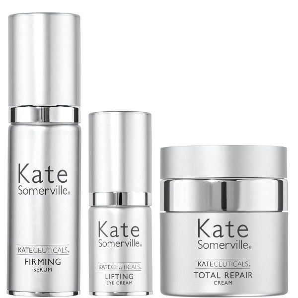 Lock in moisture while smoothing fine lines and wrinkles for less during the Kate Somerville Friends & Family Sale! Save 30% OFF the Kateceuticals Clinical Age Repair 3 Piece Set for a LIMITED TIME ONLY! Use the code FAM30 to add the discount to cart! This set, valued at $390 if purchased separately, contains 3 FULL SIZE products PLUS all orders receive a FREE DELUXE 5 piece gift set! FREE SHIPPING applies automatically at checkout.
