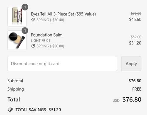No code needed, items priced as marked. FREE SHIPPING applies to orders $75+. Excludes Limelight Vanity Travel Kit, Face Forward Color Corrector, and Concealer and Color Corrector Brush. Other exclusions may apply. Take a look at our other favorite finds!