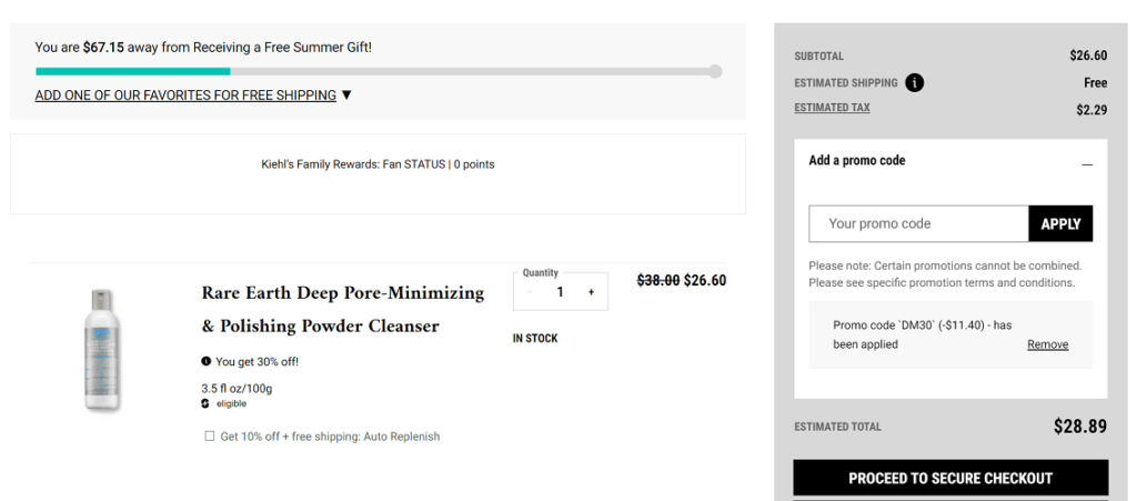 Use the Kiehl’s coupon code DM30 to add the offer to your cart. FREE SHIPPING applies to orders $50+ or choose FREE SHIPPING on orders $25+ with ShopRunner. If you don’t have a ShopRunner account you can sign up for a FREE 1 year membership from Paypal and get FREE 2-DAY SHIPPING at some of your favorite stores! Excludes new items, limited edition, sets, already reduced and promotion items.