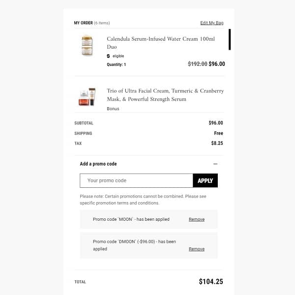 Use the Kiehl’s coupon code DMOON to add the discount to your cart. Orders $75+ use the code MOON to add the FREE gift with purchase. Don’t forget to add your FREE samples!