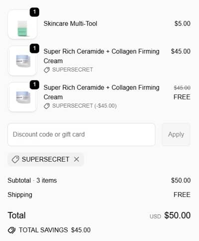 Don’t have FOMO on this super secret BOGO Besties! Buy 1 Kinship Super Rich Cream and you’ll get a second for FREE! This ultra creamy formula hydrates, plumps, and smooths fine lines and wrinkles! Add on the Skincare Multi-tool for only $5 to enjoy FREE SHIPPING!