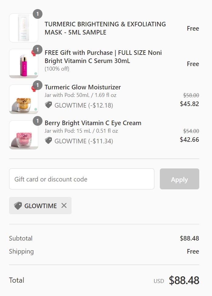 It pays to buy more at KORA Organics! Right now not only do you get 21% OFF sitewide, but you’ll also get a FREE full size Noni Bright Vitamin C Serum (a $68 value) on orders $100+! Use code GLOWTIME to apply the discount at checkout. FREE SHIPPING applies on orders $25+.